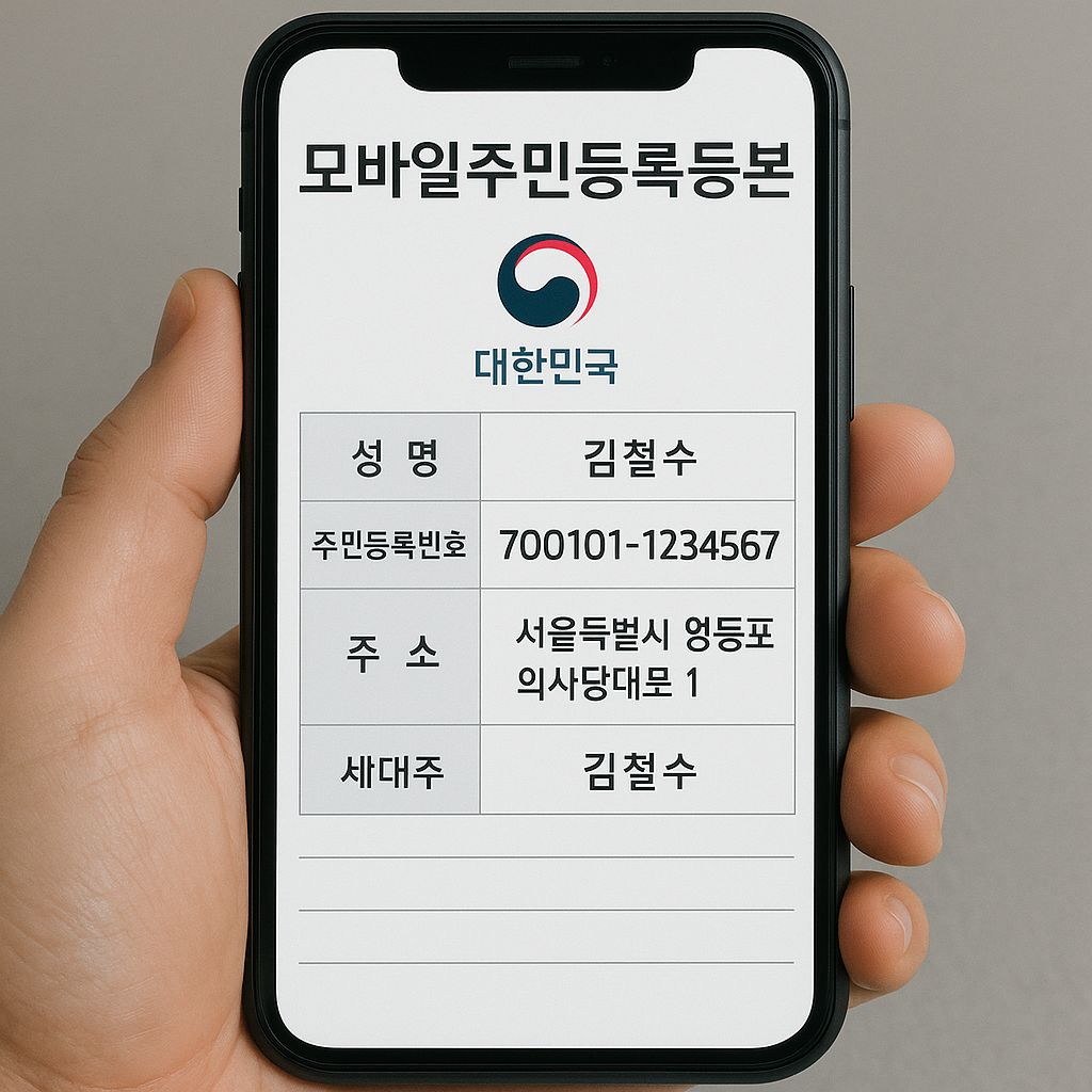 모바일 주민등록등본은 기존의 종이 문서 대신, PDF 또는 전자문서 형태로 발급되는 공식 주민등록등본이다.